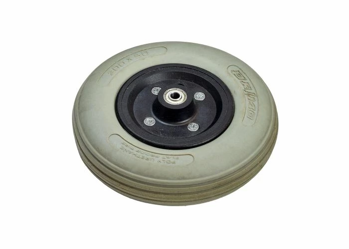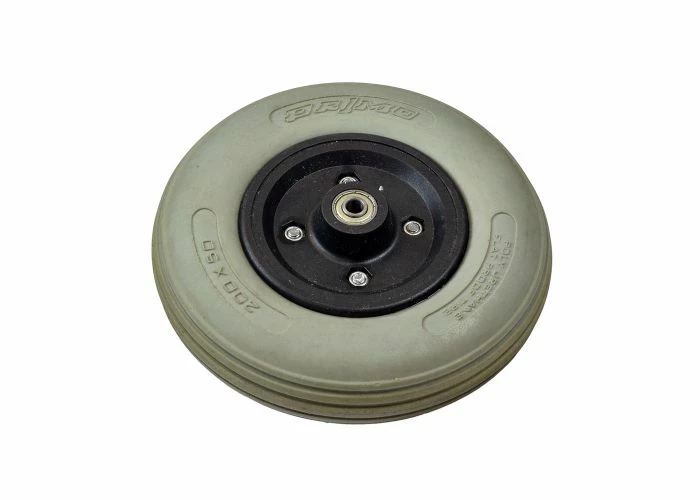 Removed from a gently used Hoveround® MPV5® power chair then tested and cleaned, this a great deal for those looking for a complete solid tire caster wheel assembly. Shows some discoloration, but is otherwise in great shape and ready for installation.