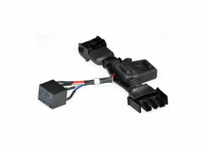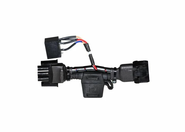The electronic wiring harness (1 of 2) for 2904-24 on-board charger conversion for the Pride Celebrity XL mobility scooter works with Pride’s newer versions of the Celebrity XL with the 24 volt, 4.0 amp on-board battery charger
