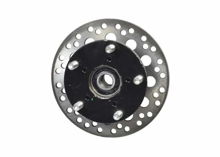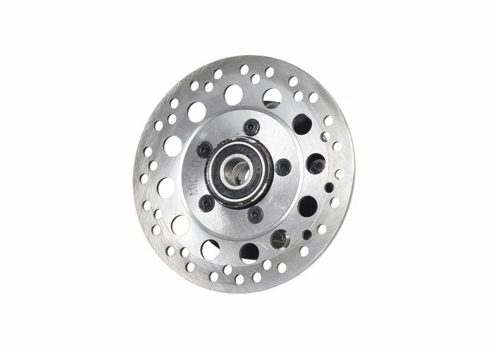 This slightly used scooter part is the hub and brake disc assembly that holds the Pursuit X’s front wheels