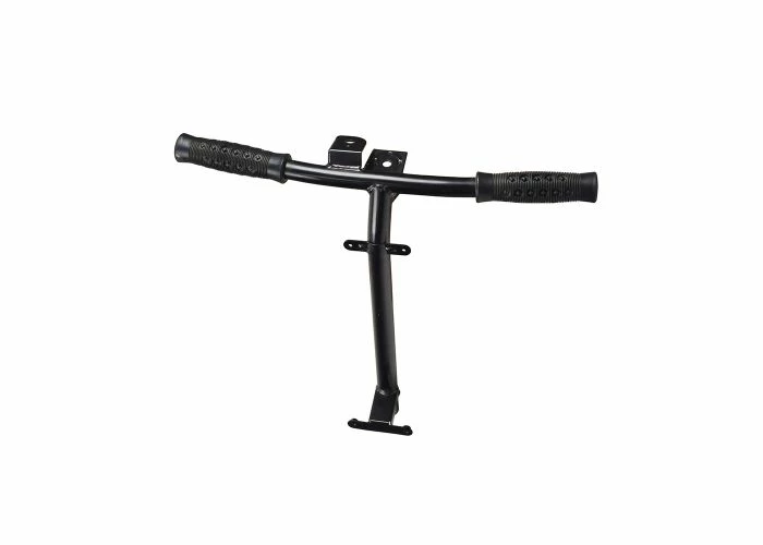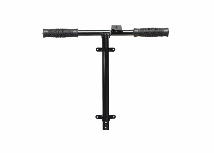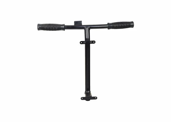 This gently-used or “pre-owned” scooter part consists of the black steel frame and a set of two rubber handlebar grips.
