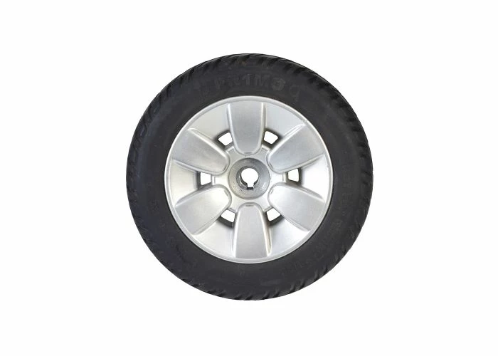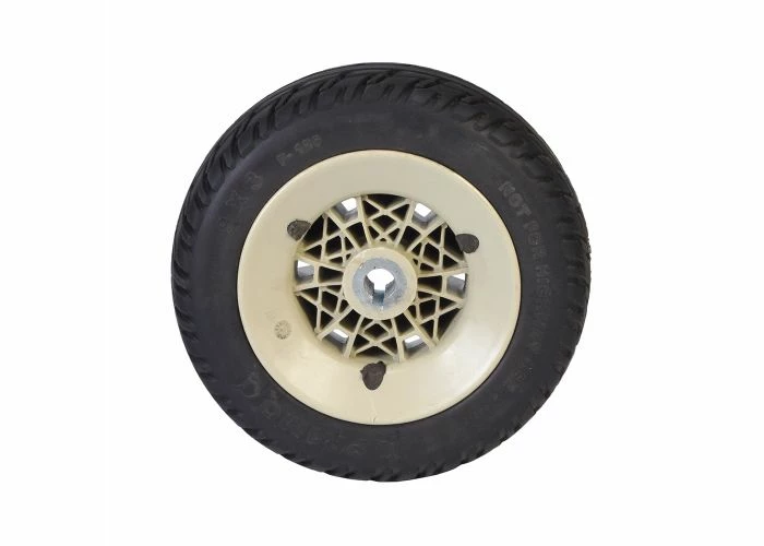 Here is a slightly used 9″ flat-free drive wheel assembly for the Jazzy Select Elite and Pride TSS 300 electric power chair