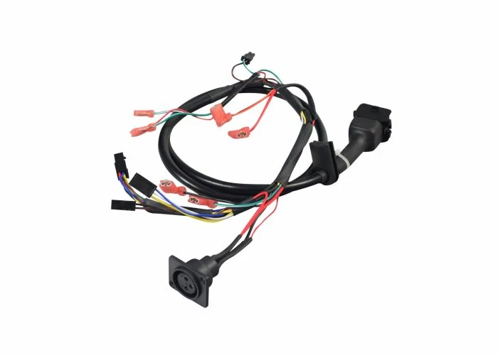 The front to rear harness for the 3-wheel Go-Go Sport (S73) connects the vital console mounted controls including the XLR charger port, the speed potentiometer, and the throttle