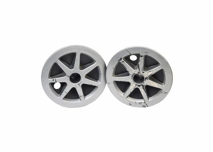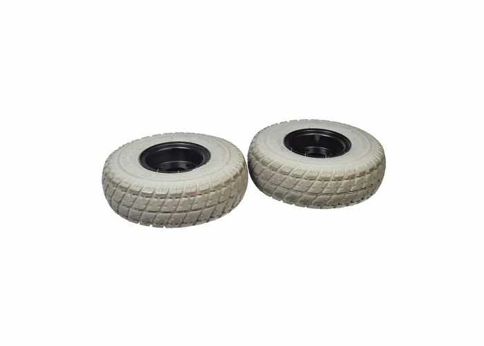 You can easily replace your worn out drive wheels with this set of two used 10 x 3 (3.00-4) drive wheel assemblies for the Jazzy Select